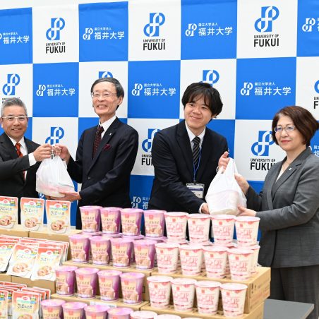 物価高騰で困窮する学生を支援するため、本学は日本学生支援機構の助成金および福井大学基金への寄附金を活用し、11月14日に食料品の贈呈式を行いました。今回の支援は、学生の経済的負担を軽減し、安心して学業に専念できる環境を整えることを目的とし[...]