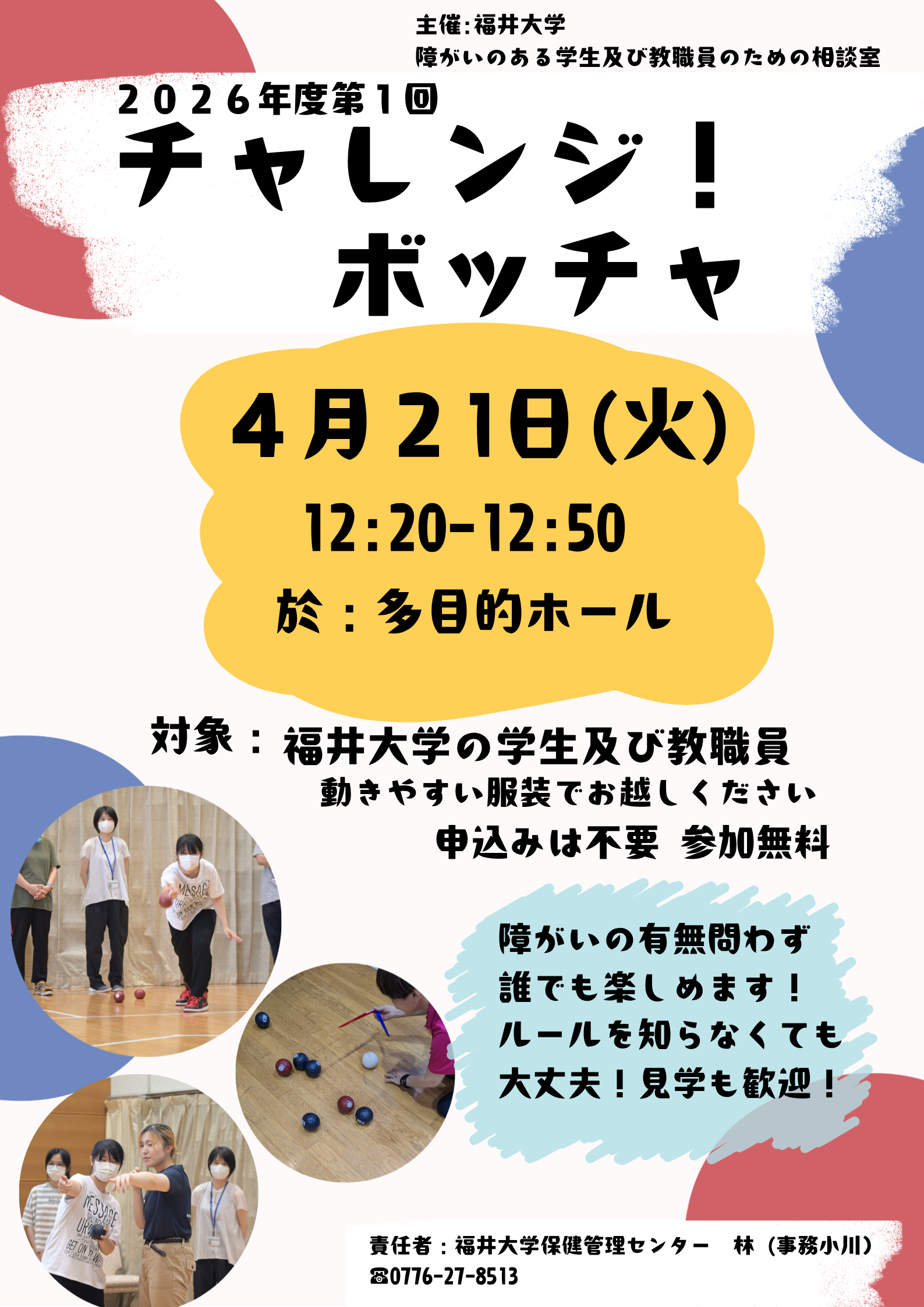 障がいのある学生及び教職員のための相談室では、下記日程にてイベントを行います。