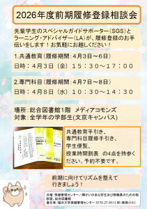 ラーニングアドバイザー(LA)による履修登録相談会を開催します。