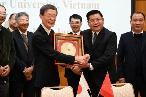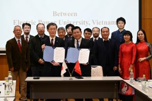 福井大学はベトナムの電力大学(EPU)と2014年に大学間協定を締結し、学生や研究者の交流を深めてきました。両大はさらなる交流の強化を図るため、11月10日に同協定を更新し、本学文京キャンパスで調印式を行いました。