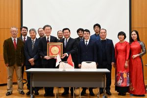 本学の内木宏延学長が「2012年に交流を開始して以来、特に原子力分野において、10年以上にわたり交流を続けてこられたことに感謝している」と挨拶。電力大学のDinh Van Chau学長は「今回の更新を機に、両大における次世代の研究、学生交流がさらに発展していくことを期待している」と本協定による期待を述べました。