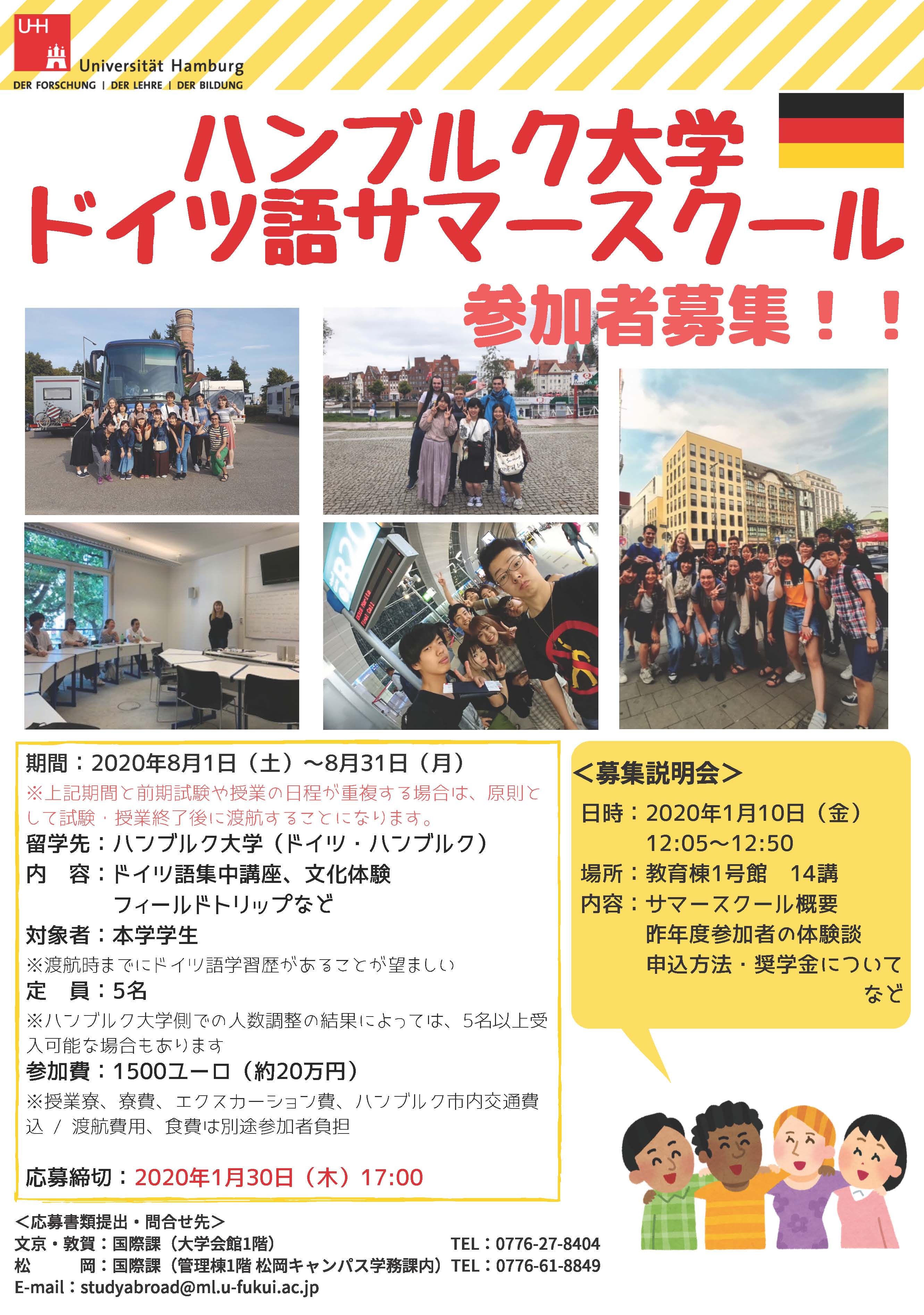 福井大学では、2020年にドイツのハンブルク大学にてドイツ語サマースクールを実施します。
