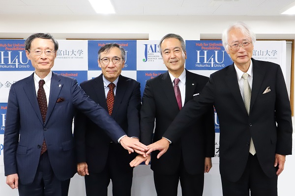 2025年10月14日に金沢大学駅前サテライトで、富山大学、金沢大学、北陸先端科学技術大学院大学、福井大学の北陸国立4大学による連携拡大に係る共同記者会見を行いました。