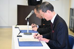 締結にあたり内木宏延学長は、「教職員と学生が一丸となって地域の課題を皆さまと共に解決し、社会を共に創り上げていきたい」と決意を述べました。