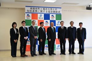 3月17日、本学と南越前町は、地域振興と相互の発展を目的に包括連携協定を締結し、医療、健康、福祉、教育、学術、文化、産業など多角的な分野で協力体制を構築します。