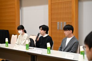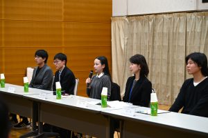 出席した学生は、大学で印象に残った学びや研究、課外活動等の成果報告や、今後の大学に対する意見を述べ、内木学長や澁谷理事からは、質問や感想が伝えられました。