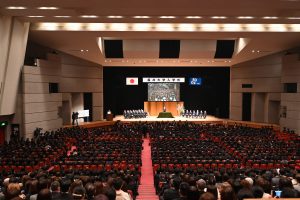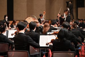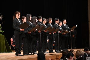 式典の締めくくりには、本学フィルハーモニー管弦楽団と医学部管弦楽団による演奏、教育学部音楽科専攻の学生による合唱とともに学歌斉唱が行われ、会場は一体感に包まれました。