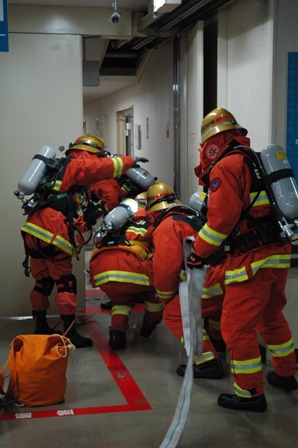 11月2日、松岡キャンパスの附属病院で消防訓練が行われました。第1部では、病棟の看護師が患者の搬送訓練を行い、第2部では、永平寺消防本部の消防士が加わり、病棟から出火、初期消火に失敗し、消防に出動要請したとの想定で、訓練が実施されました。職員が患者役となり、看護師が避難誘導、消防隊が消火、避難確認しました。また、取り残された患者を屋上から救出する訓練やはしご車からの放水も行いました。