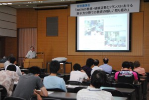 仏国CEA/INSTNのサフィエ教授が仏国における原子力人材育成の現状や取り組みを紹介しました。福井大学では原子力に関するカリキュラムの新しい取り組みとして「原子力基盤コース」を設ける予定であり、教職員や学生が聴講に訪れました。